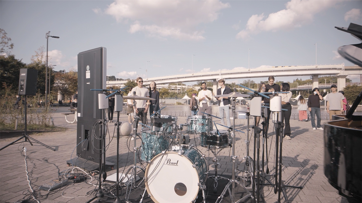 In the RIMA system, Instruments such as pianos, drums, guitars, and devices such as video kiosks and smart devices interact to create a concert without players. Even those who have no musical skills or cannot play an instrument can participate in the concert.