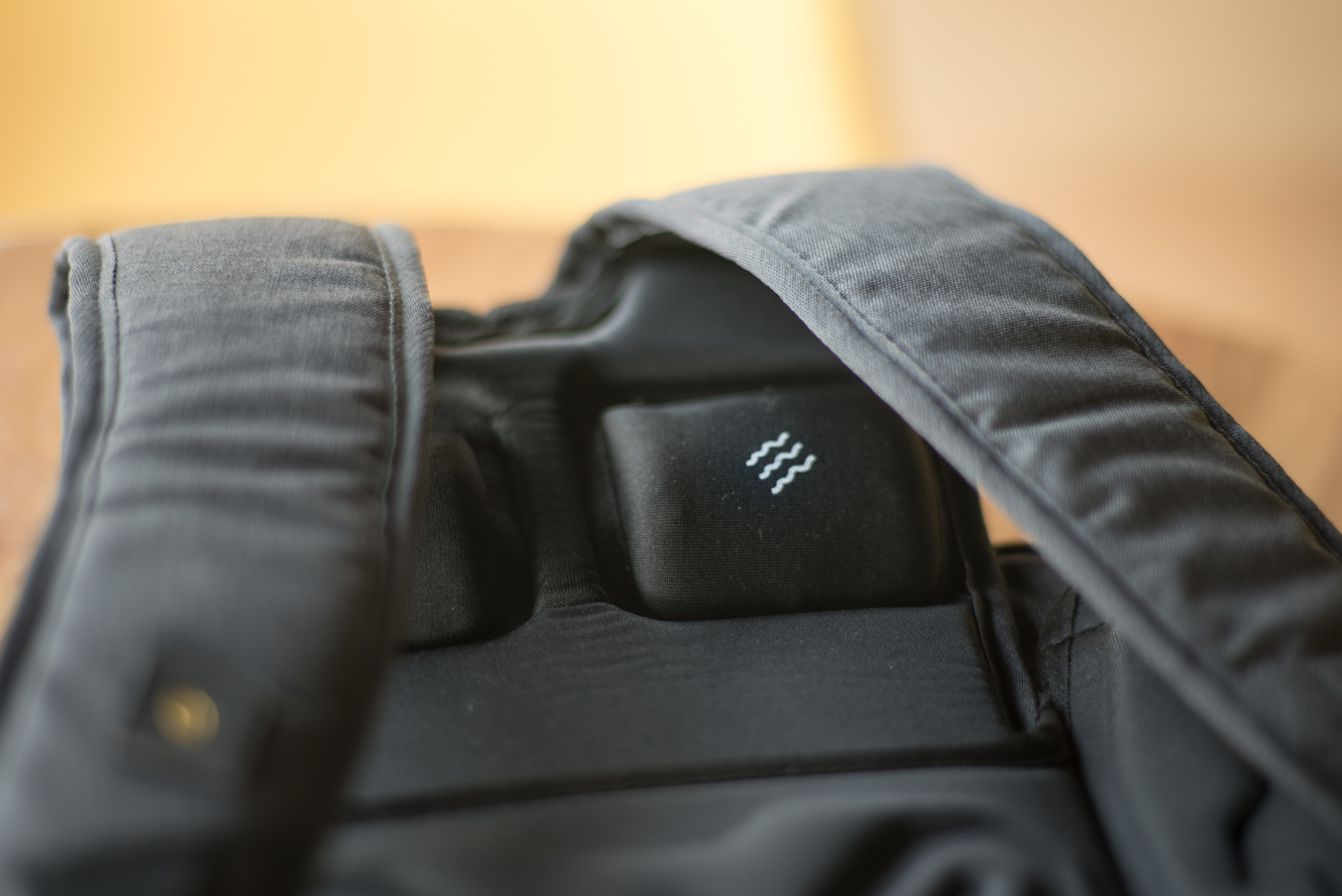 Our verdict is the massage buttons feel like a massage chair and you can tighten the sternum and waist strap to add more pressure. You will feel some kind of vibration, but that’s as far as it will go. You won’t be able to adjust the intensity. And in terms of sound, it probably won’t attract much attention in a city public transit ambiance, but if you use it in a quiet room, it will definitely turn some heads.